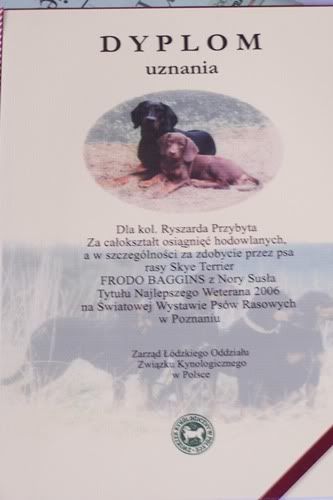 Natomiast co do samej chodowli (a raczej hodoffli!!). Po pierwsze, to sprzedali mi szczeniaka ze złamanym ogonem :mad: - nie mialoby to i tak dla mnie znaczenia, bo początkowo zupełnie nie miałam zamiaru psa wystawiać. Ale zeby nawet o tym nie wspomniec... Złamanie zauważyłam dopiero jak przywiozłam szczeniaka do domu. A ogólnie to w tej chodowli są zdaje się jeszcze oprócz skyeków także yorki, pudle, mopsy, a ostatnio na wystawie wspominali tez o suce samoyeda. Niezły zbiór, co?