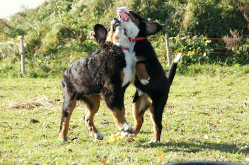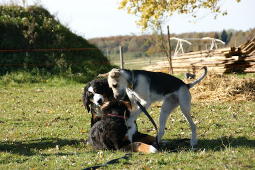 Maxio jak zwykle ma się świetnie. Szaleje w Wilkowie, już czuje się tam jak w domu. Ostatnio tylko miał bliskie spotkanie z kłami Beni (berneńczyka z guzem), ale wyszedł bez szwanku, tylko pojęczał trochę. ;p