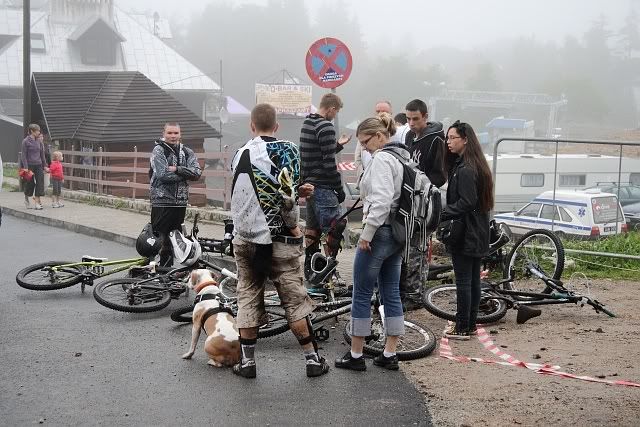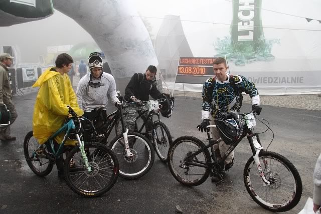 fioneczka Posted August 14, 2010 Author Posted August 14, 2010 no to najpierw Młodszy :) ze swoją ekipą ... chłopak w żółtej pelerynie ukończył zawody na 5 miejscu ... jednak miał łatwiejszą trasę bo deszcz zaczął padać po jego zjeździe, w eliminacjach miał czas lepszy o 0.12 sekund a tak wyglądała doopa po pierwszym próbnym zjeździe :roll: Quote