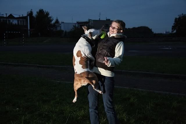 fioneczka Posted September 27, 2010 Author Posted September 27, 2010 u nas leje ... wszędzie pełno wody ... znowu wylewają rzeki w okolicy i znowu zalewa Bogatynię ... masakra normalnie Mona deszczu się nie boi ... z wieczornego spaceru, choć najdłuższy nie był wróciłam przemoczona jak koń szmaciarza a Monisia miała radochę ... biegała jak szalona po kałużach na boisku ... ona jakaś "inna" jest :eviltong: wygląda obecnie jak mleczna krowa ... wymiona do kolan wiszą :roll: sterylka się tym samym odwleka mam jakieś testy foto ... chłopaki jakieś cosik do lampy kupili i testują byłam grzeczna ... nie uszczypnęłam nikogo ... daj coś dobrego :p przestała się mieścić pod łóżko :roll: ... jak piłeczka wpadnie ... amba niestety :diabloti: rezygnacja bi przez dłuższą chwilę się tam wcisnąć nie dała rady :diabloti: ... grubas Quote