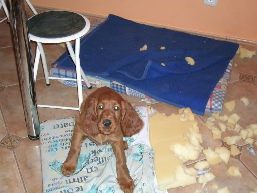 Jureja Posted June 13, 2006 Posted June 13, 2006 Coś znowu tu przycichło. Co słychać u Waszych rudych(i nie tylko)diabełków:cool3: . Mój mnie doprowadza do szału:evil_lol: .Ten pies nie zna uczucia zmęczenia:cool1: . Zobaczcie co zrobił w czasie,gdy pisałam ten post: Nowy materac:mad: Zdjęcie nie ukazuje w pełni zniczczen dokonanych przez Rise:evil_lol:.zostawiłam na moment otwarta szfkę z koszem i po chwili wszystkie śmieci były w całym domu:crazyeye: . Quote