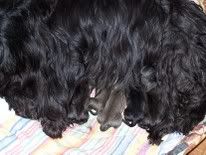 bajadera Posted April 18, 2006 Author Posted April 18, 2006 A teraz czas na różne szczeniaki : To jest Rona, która powędrowała do Austrii To zdjęcie ma swoją historię. Przedstawia pierwszy miot w naszej hodowli. Właśnie wróciliśmy z wakacji i aby całe tałatajstwo nie plątało się pod nogami przy wnoszeniu bagaży z rozpaczy wstawiłam je do wanny. No i tak wyszły :crazyeye: :crazyeye: Pisałam już w Tęczowym Moście o Laserku, który zmarł w Norwegii dokładnie w pierwsze urodziny. Ale był sprytny i zdążył po sobie zostawić potomstwo (nieplanowane):evil_lol: :evil_lol: :evil_lol: Urodziło się 11 słabiutkich piesków, z których przeżyło 4. Na tym i następnym zdjęciu niektóre z nich. A teraz aktualne szczeniaki : Ja chcę wyjść !! Przyszło jedzenie ! Jemy .... http://i65.photobucket.com/albums/h229/bumgol/new/100_5284.jpg A tu mamy tylko kilka dni. http://i65.photobucket.com/albums/h229/bumgol/new/100_5268.jpg A to jeszcze latający Laser. Quote