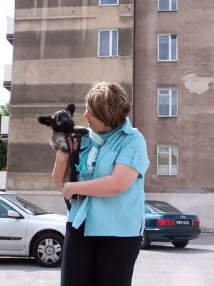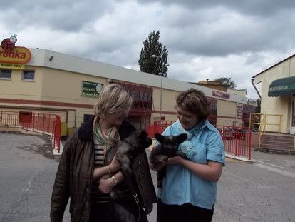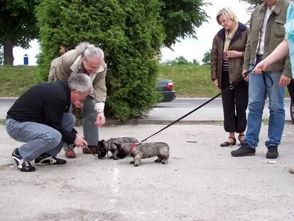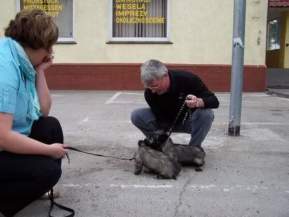 bajadera Posted May 28, 2006 Author Posted May 28, 2006 Ponadto w Słubicach na parkingu odbył się minishow francuskich skye terrierów. Nowi właściciele wyjechali w podróż ze swoimi ulubieńcami, aby od razu poznali nowe towarzyszki. Niestety nie bardzo jestem w stanie powiedzieć who is who, bo z czterech Francuzów tylko jedna kobitka (ta młodsza) mówiła troche po angielsku, ale z baaaardzo francuskim akcentem. A ja po francusku ani w ząb. Ale skye ładne. A to pierwsze spotkanie Finoli z przyszłymi towarzyszami. Quote