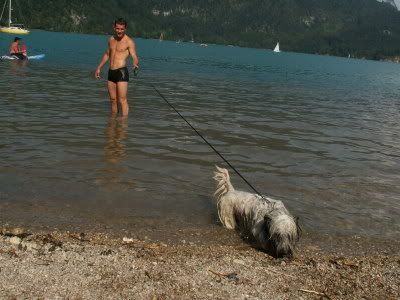 bajadera Posted August 16, 2006 Author Posted August 16, 2006 Jak pisałam wysłałam dwie suczki do Francji. A oto spotkanie Fenelli i Finoli nad morzem. A to Fenella zamyśliła się nad czymś. A może zmęczyło ją morze ? Finola ćwiczy freesbee A to bestia syta chwały wystawowej moczy się w alpejskim jeziorze. Quote