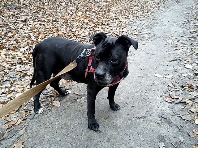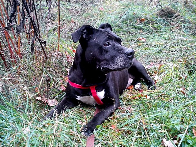 Onomato-Peja Posted November 2, 2013 Author Posted November 2, 2013 Alex, najlepszy z najpiękniejszych, doskonałej budowy i wybornej grzybicy, został ADOPTOWANY!!! :lol: Pytałam, dociekałam i podobno tym razem domek więcej niż idealny, z pewnością nie wróci 4 raz za kraty. :) Brawa dla tego Pana! Życzmy mu szczęścia! :lol: Za to chciałabym przedstawić nowy cel moich Redłowskich pielgrzymek, o to i ona... Jest stara... Jest gruba... Jest niezrównoważona psychicznie... Aza... Wcisnęli mi ją dzisiaj w zastępstwie za Alexa i mam bardzo mieszane uczucia. Gdybym widziała tylko jej opis - stwierdziłabym, że jest to pies nadający się przede wszystkim do eutanazji. Ale po godzinnym spacerze zauważam wiele plusów: Jest psiną zdrową, energiczną, pocieszną, łasą do ludzi - cholernie się cieszy na widok każdego człowieka, podskakuje i chrumka jak rasowy knur (tak również wygląda), jej wielką wadą jest agresja do psów, ale nie taka zwyczajna. Nie rzuca się na ich widok, spokojnie je obwąchuje, nie ma problemu z mijaniem ale czasem... ... Czasem ma gorszy dzień i bez ostrzeżenia wbija kły w psa z którym zazwyczaj dogaduje się bez problemu. Sytuacja taka miała miejsce już 3-4 razy, w pewnych odstępach czasowych, raz w licznym boksie, raz w biurze, raz w izolatce (ofiara był Alex, przedziurawiła mu pysk). No i nie wiem co z tą panną począć, ale nęci mnie, żeby jeszcze pare razy z nią wyjść. O DT błagać nie będę, za duże ryzyko, ale spróbuję ją trochę lepiej poznać i może opier**** pracowników, żeby ją trochę odchudzili. Quote