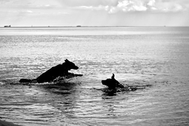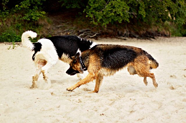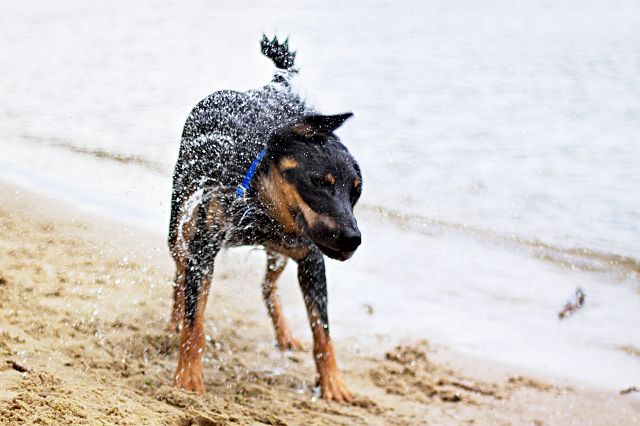 Onomato-Peja Posted July 2, 2014 Author Posted July 2, 2014 Czemu z mniejsza? :lol: I tak tu dużo nie siedzę. Jakieś będą... Krasnal wczoraj prawie przyprawiła mnie o zawał serca (albo chociaż obrzyganą tapicerkę). Pierwsza w nocy a ona dostaje ślinotoku, zaczyna piszczeć, jęczeć, odbija się jej i ma wzdęcie. Myślę sobie... Super, 3h temu jadła a potem ganiała kota... ma skręt żołądka, na stówę. Budzę matkę i jedziemy do weterynarza, pies aż się trzęsie, no ale oczywiście zanim dojechałyśmy wszystko jej przeszło. Wet ją obejrzał i ślinotok wytłumaczył zeżartym robakiem albo zatruciem pokarmowym, do obserwacji a twardy brzuch zniknął gdy walnęła wielkiego kloca przed lecznicą. Jak wróciłyśmy znalazłam rozgryzionego kleszcza, a już myślałam, że mała skończy na stole. :lol: Spacer cudowny, choć nieco deszczowy. :D Krasna uciekała do wody przed... TYM :D Quote
