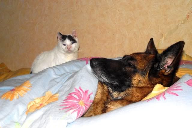Onomato-Peja Posted November 19, 2011 Author Posted November 19, 2011 [quote name='magdabroy'] Takim to dobrze :) Nie za wygodnie im trochę? Aj tam. ;) Dobrze jest. :D [quote name='Pusiakowa']http://i1219.photobucket.com/albums/dd440/Fotopeja/Rastek/DSCF0627.jpg Widać kto jest ich właścicielem :D Może jeszcze mi powiesz, że ze mnie przykład biorą? [quote name='jonQuilla'][FONT=Georgia]:evil_lol::evil_lol::evil_lol::evil_lol: polewam ze zdjęcia na desce do krojenia koty mają fajne upodobania :loveu: śliczna pannica http://i1219.photobucket.com/albums/dd440/Fotopeja/Rastek/DSCF0660.jpg mam nadzieję że kolanko przestanie dawać o sobie znać wkrótce[/FONT] Koty są świetne i to trzeba przyznać. Kolano jest już w pełni sprawne, siniaki poznikały. Za to Rasta regularnie po nawet małym wysiłku jak 1h spacer kuleje na lewą tylną łapę. Arthrogówno nic juz nie daje. Zapowiedziałam matce i nie w przyszłym a w kolejnym jeszcze tygodniu jedziemy na prześwietlenie na dysplazję, wyniku się w sumie nie boję, wiedziałam jakiego psa biorę. Boję się tylko kolejnej narkozy... :roll: [quote name='agamer']Cudnie to wygląda jak kot śpi z psem ;) Owszem. :) Jeszcze lepiej jak śpią wtuleni aczkolwiek to się nieczęsto zdarza. Zdjęcie z serii: - Rasta, siad... Rastucha siadaj... *cmoknięcie* Siad psino! Krasnallu, siadaj... Siad, siad, siad, siad, siad! ... ... ... SIADAJ KUR*A :diabloti: Chyba obie mamy dziś gorszy dzień, Krasnalia jest bardzo marudna i rozszczekana, pyskuje na każde słowo a mnie dorwała Krwawa Marry. Dzisiejszy spacer polegał głównie na dreptaniu w milczeniu, żeby przypadkiem się nie pozjadać nawzajem. Quote