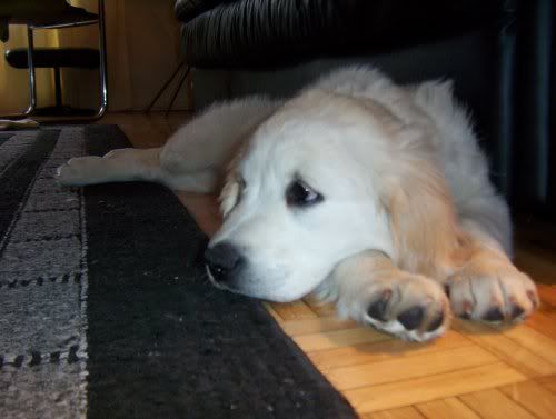 aaliw Posted May 3, 2006 Author Posted May 3, 2006 :wallbash: Jaki Pan taki kram :evil_lol: Panowie (maz i Polo) czesto razem leza przed tv i ogladaja pilke czy koszykowke :lol: Polo nawet kiedys podlecial do ekranu i lizal tych pilkarzy :diabloti: Teraz to juz moge na dobre zapomniec o zmianie kanalu, na cos innego niz sport :placz: Polucha nie jest kluseczka :p Wczoraj byl wazony 9,7 kg :multi: Norma dla goldenow w jego wieku to 10-12 kg. Quote
