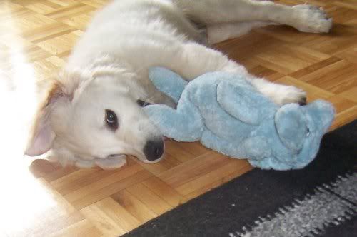 aaliw Posted May 12, 2006 Author Posted May 12, 2006 [quote name='basiulka22tychy']Safi odkad odkryla ze potrafi szczekac czesto to wykorzystuje :cool3:D:D:D: Staramy sie byc glusi na to szczekanie. I wzonsimy modly, zeby sasiedzi tez ogluchli :shake: :evil_lol: Znalazlam zdjecia, sprzed 5 tygodni z niebieskim misiem. Byla to jego pierwsza zabawka. Mis byl niewiele mniejszy od Poluchy :loveu: I aktualne z wczoraj :evil_lol: Sama sie dziwie, ze ten mis jest jeszcze w calosci, :crazyeye: po tym co Polo z nim wyprawia. Za to dac Poluchowi karton, ladnie przerobi na papke :roll:. O jego dywaniku na balkonie lepiej nie mowic :diabloti: Quote