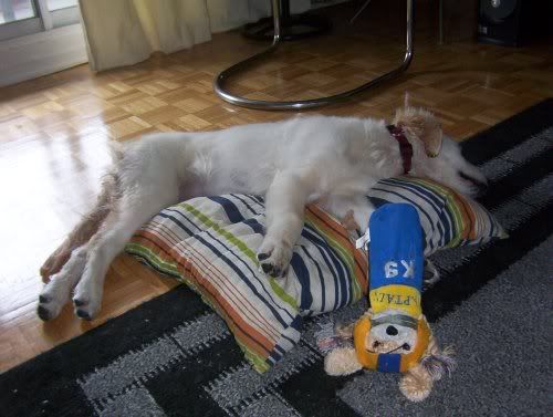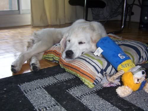 aaliw Posted July 4, 2006 Author Posted July 4, 2006 Witamy wszystkich wakacyjnie :multi: Dorasta nam pomalu psina. Futerko robi sie zlociste (juz jest inne w dotyku), wymienia zabki na nowe :eviltong: Podczas weekendu mial prawdziwa masakre w pycholku- w dwa dni wypadly wszystkie 4 kielki i co najmniej 4 zabki z tylu :p Chcialam upolowac kielka, ale sie nie udalo :placz:, Polo na sam koniec laskawie wyplul mi na dywan jeden tylni zabek. Dobre i to :diabloti: Chlodzimy sie jak tylko mozna. Polo bardzo ladnie plywa :loveu: Odpoczywam w cieniu Moje nowe zlociste futerko Kto dolki kopie...pozniej w nich siedzi :diabloti: meczace jest to plazowanie :eviltong: Pozdrawiamy wszystkich Quote