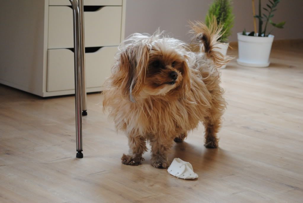 chi23 Posted February 26, 2011 Author Posted February 26, 2011 [quote name='zaba14']oj to cos słabo goni, skoro koty i tak wchodzą hihi :) a na waszego nie fuczy? :) Nie, na nasze to juz w ogóle nie zwraca uwagi;) Mietka to taka marmurkowa jest koło oczu i na łapkach:) Dałam potworom skórzane buty do memlania.. Kapsel skonsumował swojego w milczeniu, a Gabi udając traktor biegała wokół buta, robiła jakies dziwne miny, szczekała i tarzała się po nim:roflt::roflt::roflt: toć to orginalne zwierze jest:lol: Traktor z butem pozdrawiają:eviltong: Quote