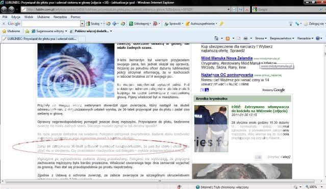 ata Posted February 6, 2011 Posted February 6, 2011 [quote name='sleepingbyday']czy jeszcze ktos ma wątpliwości co do tego, że zabijać powinien móc tylko weterynarz? zaznaczony fragment: "Zaraz po zatrzymaniu 36-latek próbował tłumaczyć funkcjonariuszom, że pies był chory i chciał tylko ulżyć mu w cierpieniu." całość sprawy tu: http://lublin.com.pl/artykuly/pokaz/14516/lubliniec,przywiazal,do,plotu,psa,i,uderzal,siekiera,w,glowe,%28zdjecia,+18%29/ kolejny biedaczek.... http://wrzesnia.info.pl/gminy/wrzesnia/6840-wrzenia-porzucony-w-lesie-na-pastw-losu- Quote