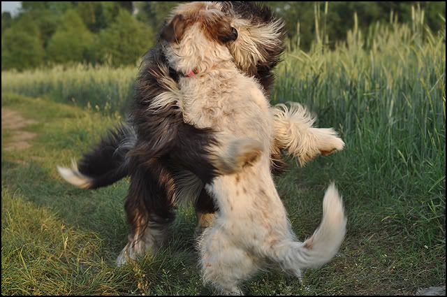 eria Posted June 16, 2011 Author Posted June 16, 2011 E tam, gonić nie będę :) Energię Foksia ma niespożytą :) A bawi się ,właśnie jak Felek, z dużą dozą warczenia i szczekania. Z zewnątrz to wygląda, jakby się miały zaraz psy pozagryzać :) Quote