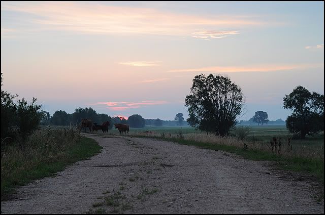 eria Posted June 27, 2011 Author Posted June 27, 2011 Obiecuję wieczorem wstawić znów większą porcyjkę, ale dopiero wieczorem, bo teraz będę mieć kupę roboty w postaci dwóch jorków ;). edit. Wschód słońca w czwartek nie był już tak piękny jak w środę - w nocy przeszła burza i nie było mgły. Były za to krowy, które wyszły na drogę i stały tak dłuższą chwilę zaskoczone naszą obecnością i było po nich widać ,że zamierzały iść w naszą stronę i pokrzyżowałyśmy im plany ;) Quote
