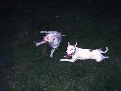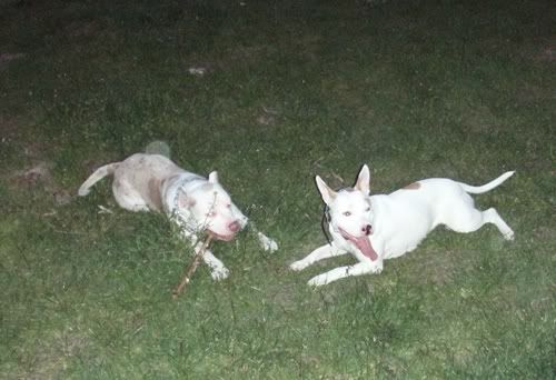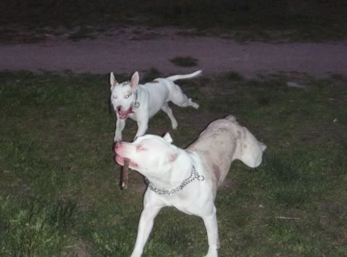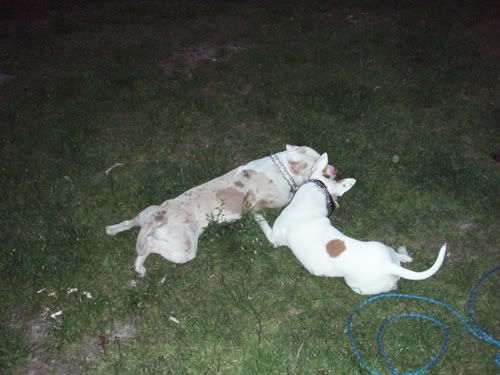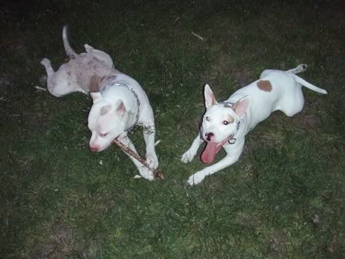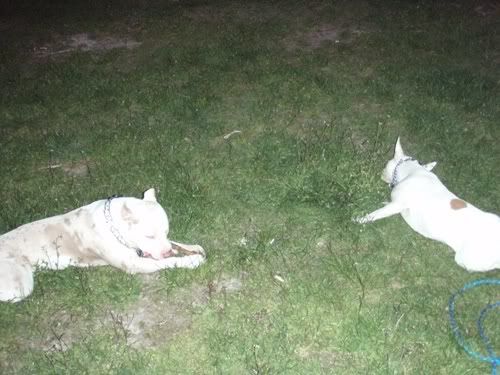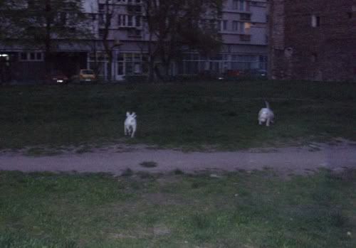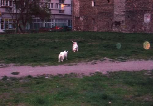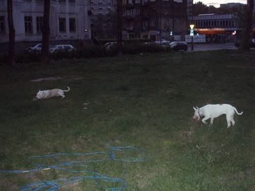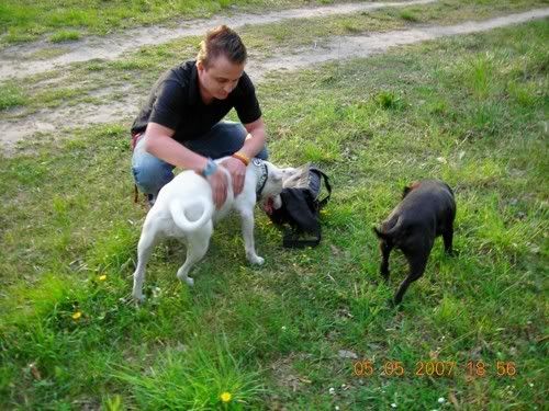 Dag Posted May 25, 2007 Posted May 25, 2007 jusi napisał(a):no co jest??:hmmmm: taka ciszszszaa:helo: Przepraszaaaam!!!!! Strasznie przepraszam!!! Się poprawiam!!! Od czego by tu zacząć... Pigi jest grzeczna prawie jak janiołek... no zjadła dziś ludzką kupę, ale tylko kawałeczek... bo potem dostała prądem...:diabloti: Wraca już do mnie piękniasto, nawet nie próbuje zwiewać i tylko czasem jak głuchnie, to trzeba jej przypomnieć, że ja na serio mówię... Ktos kiedyś napisał, że obroże elektryczne to fajna rzecz, bo sie panowie mundurowi odczepiają... hihihi... dane mi było sprawdzić tą teorię przedwczoraj... A było tak: Park Saski, po północy, kumpel, dwie świnie. Ja siedziałam sobie na ławeczce w łapce trzymajac pilota, kumpel łaził ze 40m dalej z Pigą w poszukiwaniu patyczka (wkurzają mnie z tym sprzątaniem parku... nigdzie nie ma patyczków). Do kumpla podeszli panowie mundurowi (tak ładnie stanęli za drzewkiem, że ich nie widziałam, a co za tym w błogiej nieświadomości żyjąc, nawet nie zdążyłam sie zdenerwować wizją mandatu). Czarna świnia miała mordę zapchaną frisbee, więc najwyraźniej nie stanowiła zagrożenia (a poza tym po ciemoku Chrum wygląda jeszcze bardziej pokracznie, więc nie było widać, że to pies morderca). Biała świnia za to szeroko uśmiechnęła się do panów mundurowych, którzy zaczęli uprzejmie informować kumpla, że ten czarny pies to spoko, ale ten biały pies to musi być w kagańcu albo na smyczy. Na co kumpel równie uprzejmie zapytał panów, czy widzą to czerwone światełko mrygające psu pod ryjem i poinformował, że toto nie służy do lokalizacji psa w ciemności, tylko do przywalania mu prądem, jakby chciał się na kogoś/coś rzucić. Panowie mundurowi zadali jeszcze kilka pytań w stylu "kto ma pilota", jak to działa itd, po czym usatysfakcjonowani odeszli w ciemną dal. Jupiiiiiiiiii!!! Jeszcze kupię Chrumie atrapę i mam panów mundurowych z bani!!!!!!!!! Wracając do Pigusi, w parku zachowywała sie bardzo grzecznie, ganiała za piłeczką i ciągała sznurek, ale ze zabawy się jej nudzą, to głównie zwiedzała wracajac biegusiem po smakołyka jak się darłam. Pod domem kiele 4 rano zaliczyłyśmy już kilka TOTALNIE bezsmyczowych spacerków na dwie świnie i Dag i generalnie świat jest piękny. Żeby jeszcze nie startowała z niewiadomymi zamiarami do małych piesków, oraz nie darła tak strasznie ryja jak inny pies- obojętnie, czy duży czy mały na nią szczeknie lub warknie... no i żeby naumiała się w koncu ganiać za tą cholerną piłeczką, albo żeby nie nudziła się tak szybko patykami... Mogłabym ją wtedy w upale zajechać w 20min tak jak Chrumę za pomocą frisbee i nie łaziłaby mi potem po domu szukajac atrakcji... No i żeby nie lała prawie codziennie w domu... Nad tym wszystkim popracuje Leszek Kalisz, do którego wysyłam Pigi na kolonie na całe dwa miesiące w wakacje... hihihi... zobaczymy, co z tego wyjdzie! A teraz fotki. Quote