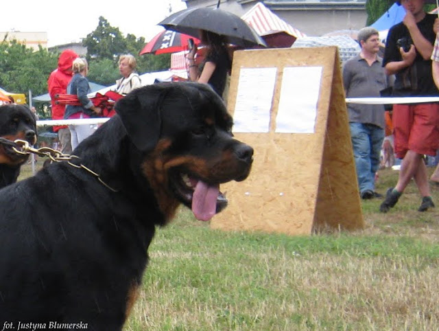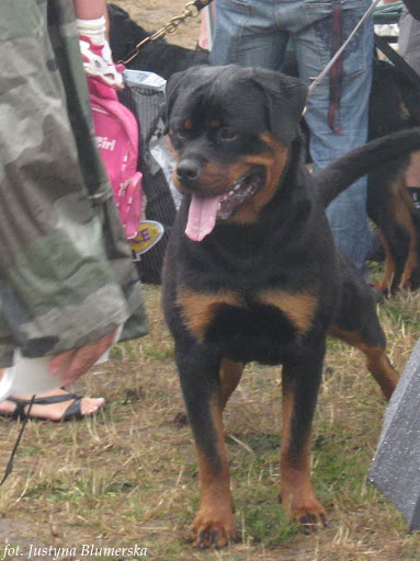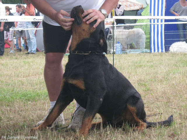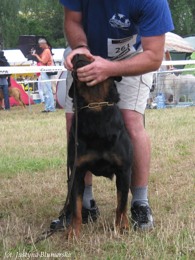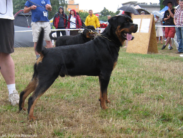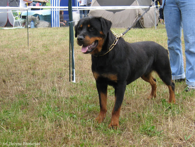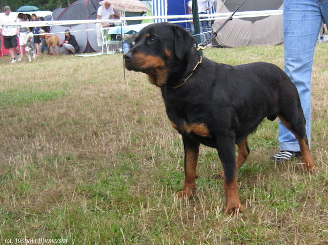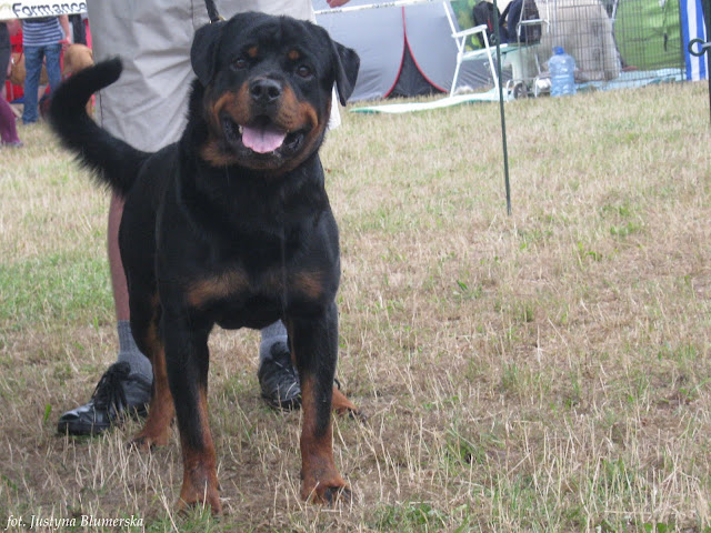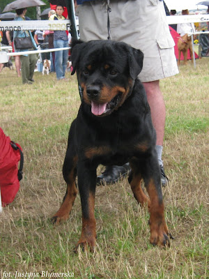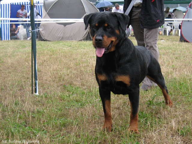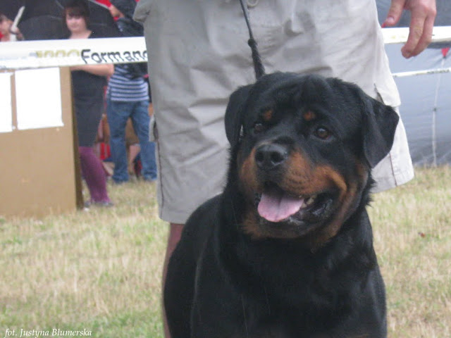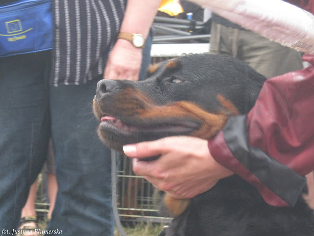 revii Posted July 18, 2010 Posted July 18, 2010 Już miałam nie jechać, ale na szczęście akurat w niedzielę pogoda się zmieniła :) Choć szczerze mówiąc, teraz to nie wiem czy cieszyć się z odmiany pogody - ta wystawa nie była zbyt przyjemna - i nie chodzi tu o tą odrobinę deszczu i śliską trawę, ale o babkę z ringu głównego, która zagłuszała wszystko, paskudny tłok, ścisk i brak miejsca... :shake: Mam nadzieję, że w przyszłym roku gdyńska wystawa odbędzie się w innej lokalizacji. Niemniej starałam się przygotować małą relację i liczę, że oglądającym dostarczy ona choć trochę rozrywki ;) Ring: 5 Sędzia: Piotr Król (PL) PSY kl.młodzieży ULIX von der Blockhutte - I Zw. Mł., NJwR, Zw. Rasy o. doskonała kl.pośrednia NEMO from Hause Rotvis - I CWC o. doskonała kl.otwarta LENNOX from Hause Rotvis - I CWC, Zwycięzca o. doskonała SUKI kl.młodzieży CLOVER RG Alegranda - I Zw. Mł. o. doskonała kl.pośrednia CATI RG Alegranda - I CWC o. doskonała kl.otwarta SUMA Catani - spóźniona kl.użytkowa DAFNE Ciapunia Na - II o. doskonała REGGI Amber Rottis - I CWC, Zwycięzca o. doskonała Jeśli ktoś zauważy błędnie podpisane zdjęcia lub wadliwie wgrane filmiki, proszę dać znać - poprawię. Quote