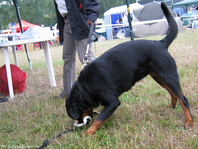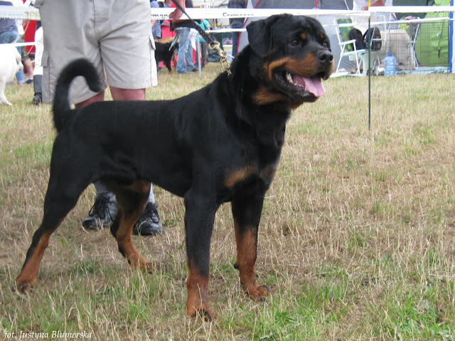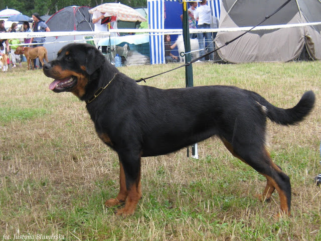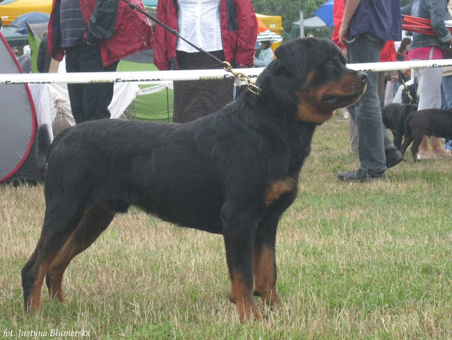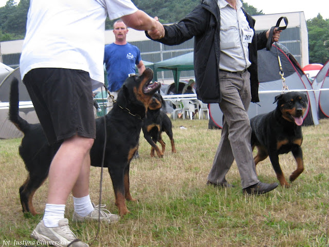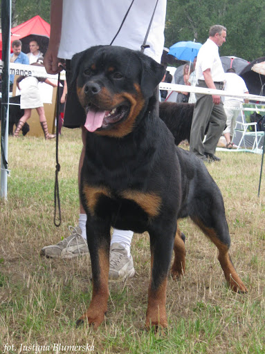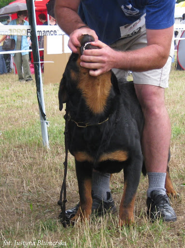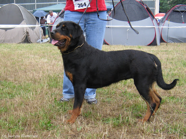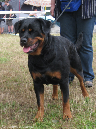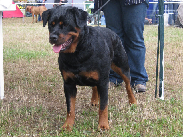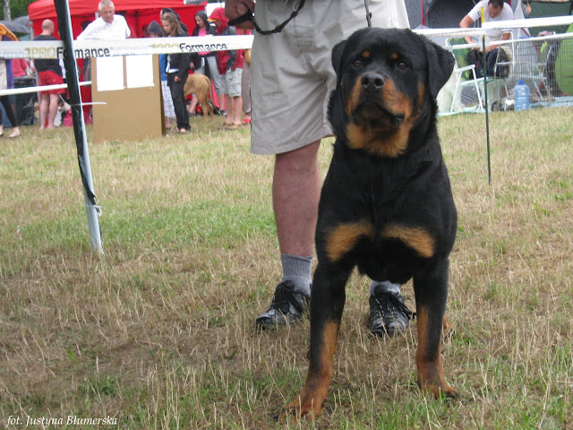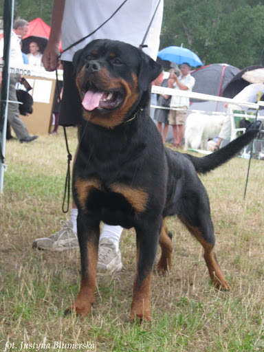 revii Posted July 18, 2010 Posted July 18, 2010 Już miałam nie jechać, ale na szczęście akurat w niedzielę pogoda się zmieniła :) Choć szczerze mówiąc, teraz to nie wiem czy cieszyć się z odmiany pogody - ta wystawa nie była zbyt przyjemna - i nie chodzi tu o tą odrobinę deszczu i śliską trawę, ale o babkę z ringu głównego, która zagłuszała wszystko, paskudny tłok, ścisk i brak miejsca... :shake: Mam nadzieję, że w przyszłym roku gdyńska wystawa odbędzie się w innej lokalizacji. Niemniej starałam się przygotować małą relację i liczę, że oglądającym dostarczy ona choć trochę rozrywki ;) Ring: 5 Sędzia: Piotr Król (PL) PSY kl.młodzieży ULIX von der Blockhutte - I Zw. Mł., NJwR, Zw. Rasy o. doskonała kl.pośrednia NEMO from Hause Rotvis - I CWC o. doskonała kl.otwarta LENNOX from Hause Rotvis - I CWC, Zwycięzca o. doskonała SUKI kl.młodzieży CLOVER RG Alegranda - I Zw. Mł. o. doskonała kl.pośrednia CATI RG Alegranda - I CWC o. doskonała kl.otwarta SUMA Catani - spóźniona kl.użytkowa DAFNE Ciapunia Na - II o. doskonała REGGI Amber Rottis - I CWC, Zwycięzca o. doskonała Jeśli ktoś zauważy błędnie podpisane zdjęcia lub wadliwie wgrane filmiki, proszę dać znać - poprawię. Quote