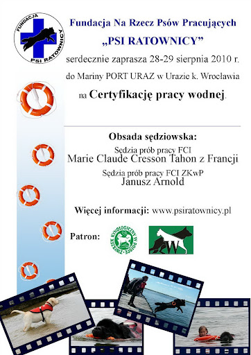 Psi Ratownicy Posted August 11, 2010 Posted August 11, 2010 Zapraszamy na I Certyfikację Pracy Wodnej Fundacji "Psi Ratownicy". Szczegóły na plakacie i na naszej stronie internetowej. Quote