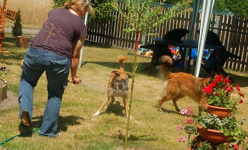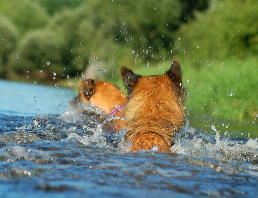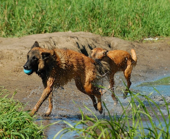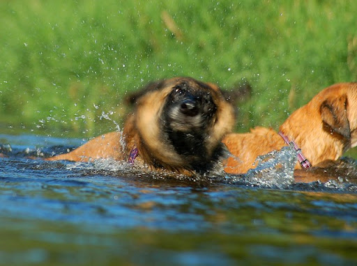 Cerber Posted July 11, 2010 Author Posted July 11, 2010 i zabawa na całego... najpier nie co ochlastałam wodą psy, a później pozwalałam im ganiać do woli... w tym czasie tatko wziął aparat i bądź co bądź pare fajnych ujęć zrobił :) to jest ten sam kamien przy ktorym mandy stala jako 8 tyg. kulka :P :P nie co się małej urosło :P zdjęcie z innej nie co perspektywy a i szkoda, ze tato nie uchwycił całego kamienia :P Quote