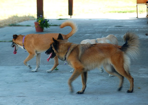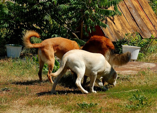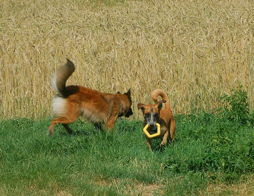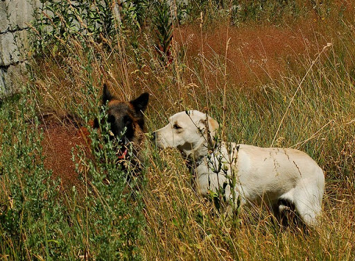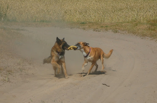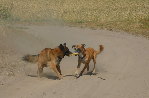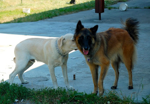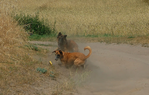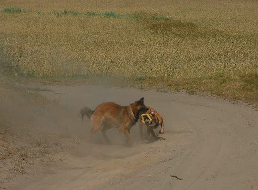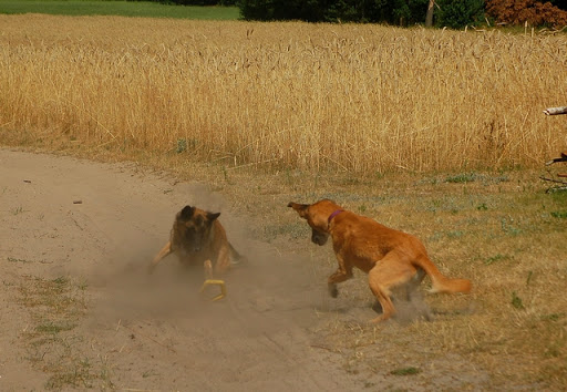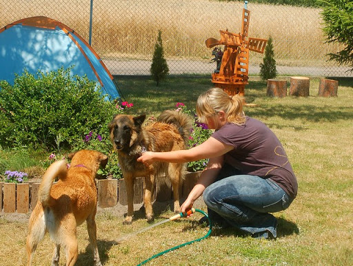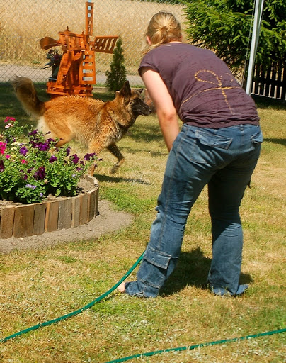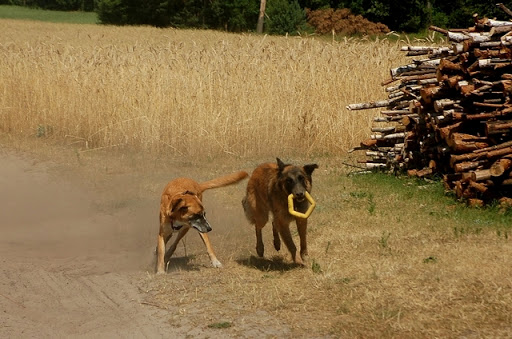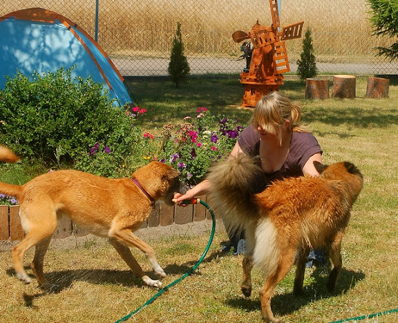 Cerber Posted July 11, 2010 Author Posted July 11, 2010 dziś byliśmy na wsi :) jak ja kocham wieś, a już na pewno tą, na której mieszka moje wujostwo, 3/4 rodziny od strony taty ;) tam 2 lata temu mandy była na pierwszym w życiu socjalu, na drugi dzień zaraz po przyjeździe z hodowli. Było fantastycznie mimo skwaru na niebie... psy jednak miały dobrze gdyż było dużo cienia a i wujek dał nam się pobawić wężem ogrodowym, za którym cerber szalał jak głupi :P najpierw pojechaliśmy w jedno miejsce z tatą, gdzie zostawił jakieś deseczki, nie wiem jakie i po co ;) spotkaliśmy tam mega uległego aczkolwiek młodziutkiego labradorka, był mega uległy, łaził na podkulonych łapach... coś czuję, że on tam za dobrze nie ma, ale łasił się do moich psów niemiłosiernie, szczeólnie do mandy, kotóra dla niego guru chyba była... jak zwykle zaniuszony cerbi Quote