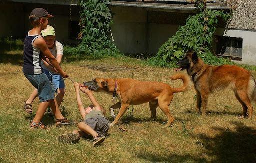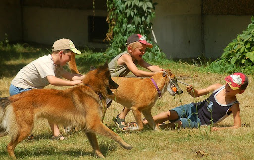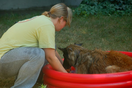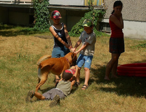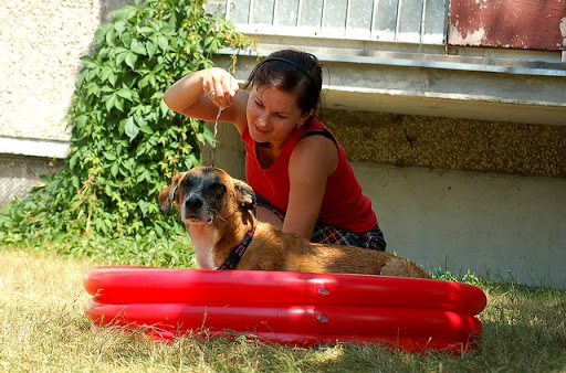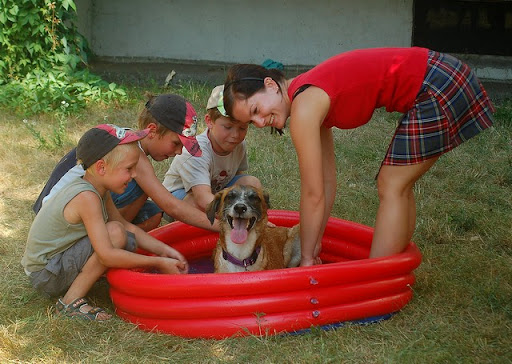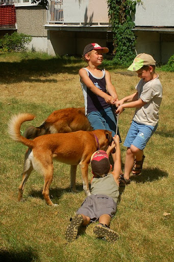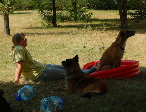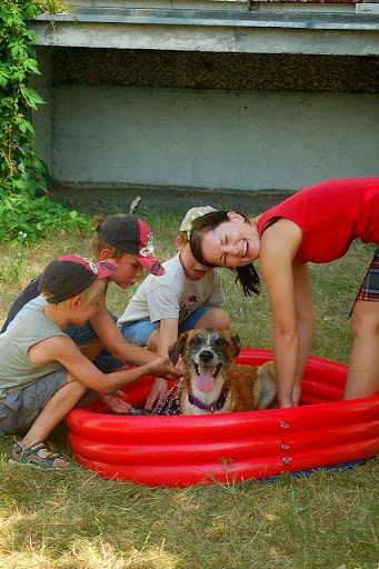 Cerber Posted July 13, 2010 Author Posted July 13, 2010 wczoraj mielismy super swietna zabawe za blokiem... mianowicie ostatnio perfidnie sciagajac ze znajomej, kupilam mini basenik psom i postanowilam je schladzac w baseniku a nie ciagle oblewac woda z butelki :) zabawa byla super :) potem przylecialy dzieciaczki z klatki obok i zabawa byla podwojnie fajna, szczegolnie dla dzieci i psow :) mandy sie specjalizowala w pasieniu ;) Quote