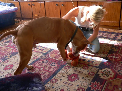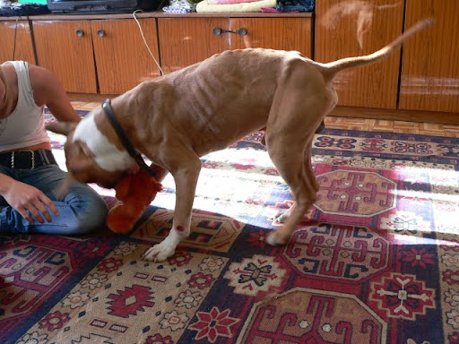 ageralion Posted October 10, 2010 Author Posted October 10, 2010 Bentley trafil do wspanialego domu, dziewczyny przyszly rano i odrazu zaczely pytac o amstaffy, bo pozegnaly niedawno swojego przyjaciela z powodu choroby. Co sie pozniej okazalo, nasz Benteleyek mozna powiedziec jest "szwagerm" Rojberka (pani Bentelya i pan Rojberka sa para) Stan jest zdrowia tragiczny, pies nie dosc ze sie probowal zaglodzic, to jeszcze nikt nie zauwazyl ze pies powygryzal sobie 3 lapy prawie do kosci, napuchniete, zaropiale nadgarstki przednich lap nie wygladaja ladnia, a jego masa ciala na bank nie przekracza 20kg. Za dwa tygodnie Bentley raczej nie wyszedl by ze schroniska o wlasnych silach, juz teraz ma bardzo blade dziasla i jest bardzo slaby Teraz odsypia pod kolderka.. W drodze do nowego domku Zasypiam... :) Quote