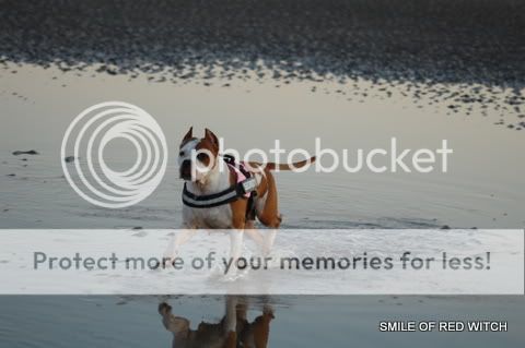 Ania praktycznie wszystkie psy, które były szalały w morzu ;) poza tym jak widzisz ona nie pływała, ona chodziła przy brzegu ;) Aki spuszczona ze smyczy, od razu pognała do morza ;) potem szalała w promykach słoneczka i nie było jej chyba zimno ;)