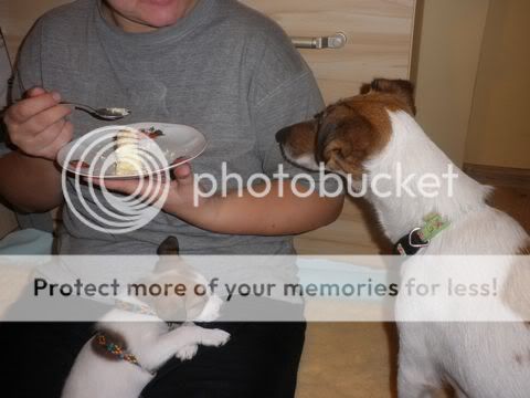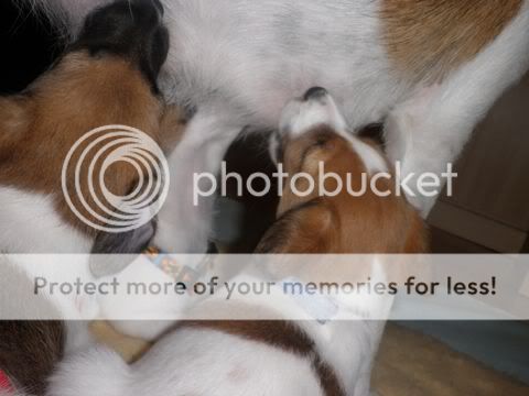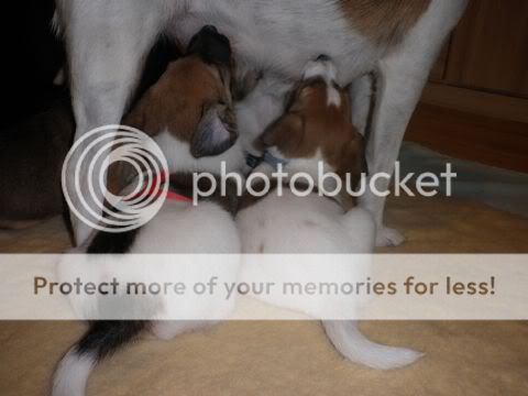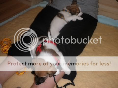 DoPi Posted November 17, 2010 Posted November 17, 2010 Amiguś, dzięki za zdjęcia , a zwłaszcza za opisy zdjęć:evil_lol:. Troche na tych zdjęciach wychodzi, ze mam ino tyko jeden podkoszulek , ale co tam. Zwróćcie proszę uwagę na wielkość szczeniaków. Na początku mama musiała leżeć, żeby maluchy się pożywiły. Potem doskakiwały jak stała, potem już stały swobodnie, a teraz muszą leżeć, zeby cos im skapnęło. Jedzonka jedzą juz i namoczone i suche i podjadają mamuni. Jeszcze im dzisiaj zapodam kleik ryzowy na mleczku 1,5 % , przegotowanym.:drinka: Myślę, że bedzie im smakowało.;) Evelka zapraszam , bo w sobotę Do 2411Magdalenki jedzie juz Kropka i Foczka. Magda juz sie cieszy i.....już się boi:eviltong:. Quote