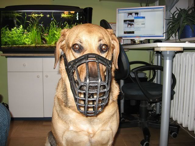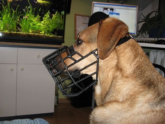 Agnes Posted December 31, 2009 Posted December 31, 2009 Dostalam do przymierzenia taki kaganiec...i sie zastanawiam...co sadzicie? To co moja sucz sadzi o fizjologach - nie prawda jest, ze kazdy pies go zaakceptuje:evil_lol: Zapiety mocniej - blizej nosa i oczu... i luzniej o dziurke ale ryzyko jest, ze jej zleci - ew zrobie dziurke pomiedzy Quote
