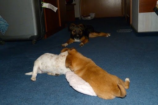 Soema Posted January 27, 2011 Author Posted January 27, 2011 O naszej władzy nie chcę mi się rozmawiać...:shake: Dla rozluźnienia siebie i innych wstawię kilka fot Molly :) rozkochuje wszystkich wokół, wie gdzie mieszka już, śmiga na spacerach, w znajomym sklepie i salonie Perros jest już znana i rozpieszczana :) śmieją się, że przychodzi tam się dokarmić i wypieścić:razz: kilka fot pościelowych.... :) :evil_lol::evil_lol: Quote