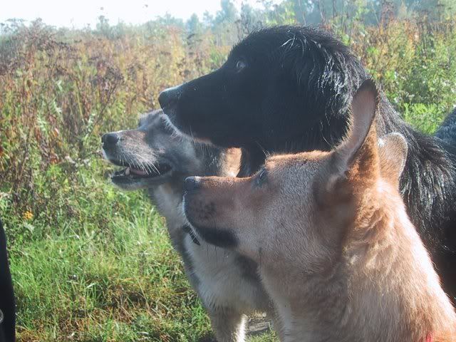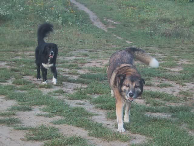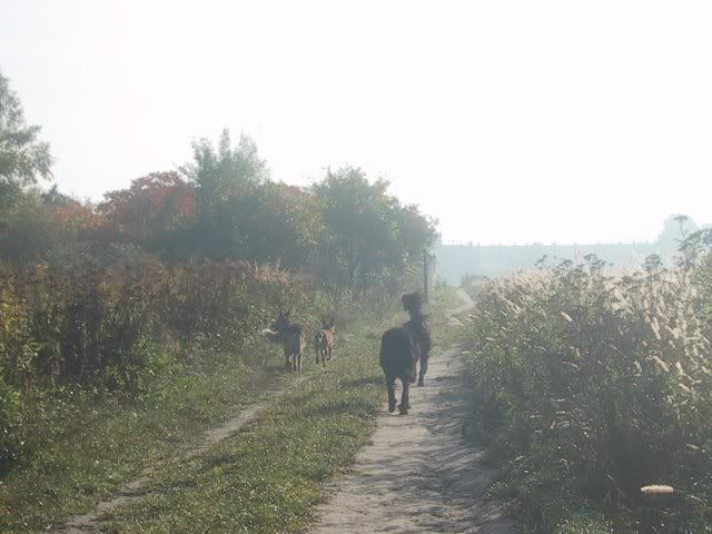 APSA Posted October 8, 2008 Author Posted October 8, 2008 Dziś rano też byliśmy na długim spacerze, ale trochę wcześniej, jeszcze właściwie po ciemku. Piesy się wybiegały, częściowo wspomagane przeze mnie. Bo ja wredna jestem - biegnie sobie pies dziesięć metrów przede mną, piętnaście metrów przede mną, dwadzieścia metrów przede mną. A ja w pewnym momencie odwracam się na pięcie - i w drugą stronę. Po cichu uciekam psom i czekam, aż mi sie zza pleców rozlegnie dziki tętent :loveu: Z Punią ta sztuczka nie przejdzie - ona się trzyma blisko, ale na przykład z tymi panami: Oraz z tą panną Zdarza się, że mogę porządnie przegonić rozbawionego psa (szczególnie takiego jednego czarnego ;)) poruszając sie w tę i z powrotem na odcinku krótszym niż dziesięć metrów :lol: Quote