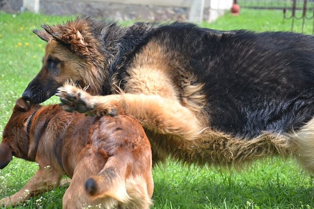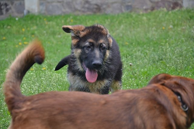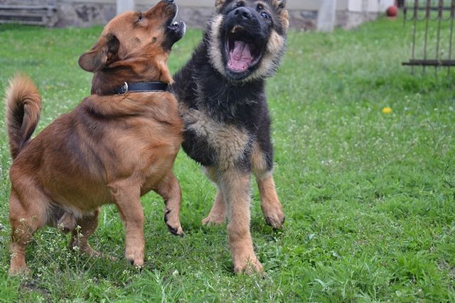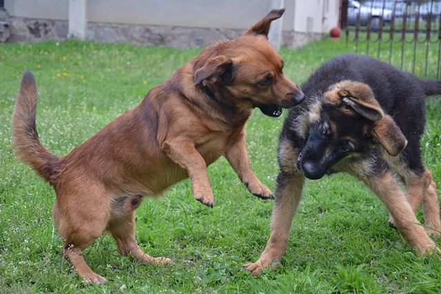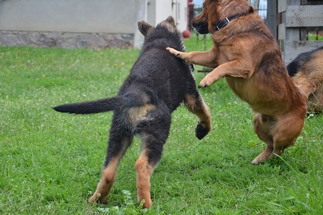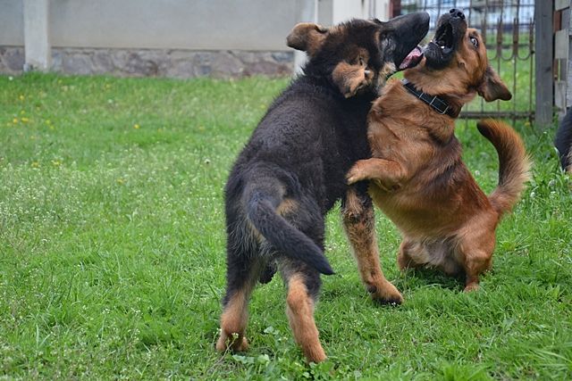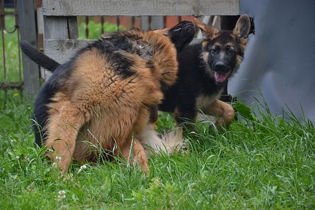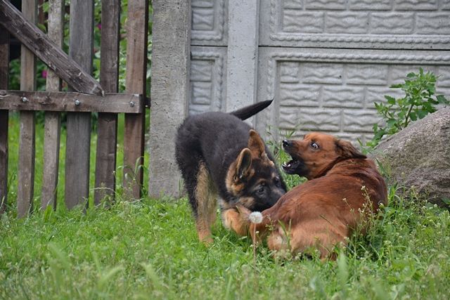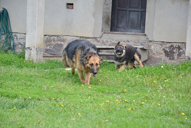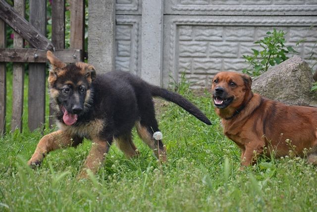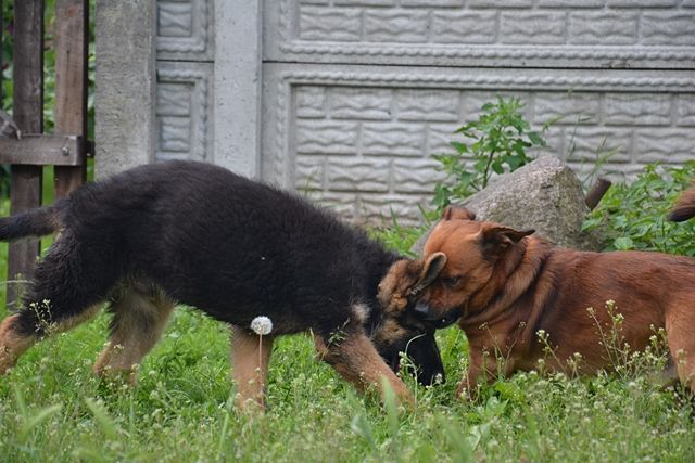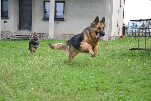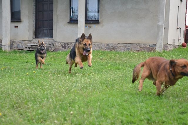 kalyna Posted June 24, 2012 Author Posted June 24, 2012 [quote name='dagaa111']http://i1076.photobucket.com/albums/w457/kalyna2/DSC_0033.jpg jaka awantura :D o dziwo żadna awantura.. po prostu one tak sie bawią... a im więcej podskakują to tym mniej ja wkładam pracy, aby były wymęczone ;) [quote name='aganela']ho ho ile zdjęć:loveu:bawią się jakby się nie widzieli sto lat!:lol: a Gandii dalej jeszcze w domku czy uczysz go powoli mieszkania w kojcu? Moja Luna też ma charakter...gdy ma swoje żarcie odpędza Vikkę od niego..na każdego obcego psa,naszego kota szczeka..:roll: Gandi poszedł do kojca po tygodniu mieszkania w domu.. więc to stały bywalec dworu jest... bierzemy go i Sonię do domu na parę minut, ale bez szału.. tzn. przez G. bo go roznosi i biega po domu jak Koń. Z jedzeniem nie ma problemu, z zabawkami też nie jeśli chodzi o niego. Tzn. Sonia ma we wszystkim pierwszeństwo a on i tak kombinuje jak jej odebrać wszystko. On szczeka jak są psy bojaźliwe, zalęknione, o słabej psychice. Wtedy on wyczuwa, że ma przewagę nad nimi. No a na placu to próbuje podskakiwać do innych. I jego główny problem to to, że się nie męczy. Do upartego będzie walczył....nawet z przewodnikiem :roll: tzn. chodzenie przy nodze.. ćwiczyłam z nim 2 godziny dziennie i nie było widać ŻADNYCH rezultatów... no a teraz to szlifujemy posłuszeństwo 4-5 godzin dziennie. Dzisiaj po południu byłam z nim, potem wycieczka, no i wieczorem jeszcze ponad godzinę będziemy ćwiczyć... ehh dzisiaj wzięłyśmy z mamą i siostrą Gandiego do samochodu i pojechałyśmy do lasu na ścieżki rowerowe. No i słuchał mnie :loveu: wlazł łapkami do wody, ale potem wpadł po brzuszek.. no i chodziliśmy po drodze w lesie i mijało nas duuużo rowerów a on był na mnie skupiony :loveu: aaa i wygłaskali go obcy ludzie i zachwycali się nim..nawet miło porozmawialiśmy. Raczej gdybym wzięła Sonię to tak miło nie byłoby :( sami to nawet powiedzieli, że jak urośnie to będę się go bać :roll: I byliśmy w parku, pochodziliśmy i sensacje robiliśmy, bo to szczeniak :roll: Niektórzy ludzie patrzyli na niego jakby miał ich co najmniej zjeść...a on optymista. mam nadzieję, że następnym razem weźmiemy Sonię :) Quote