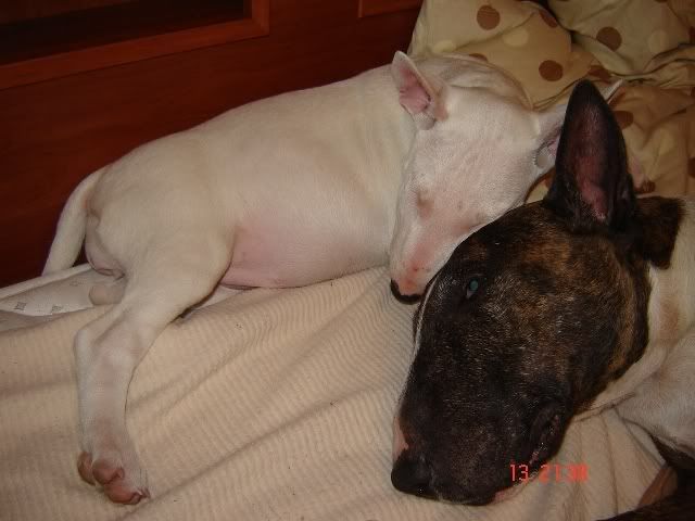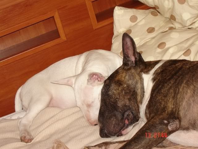 doddy Posted November 16, 2006 Author Posted November 16, 2006 Hektor ma nową koleżankę Patrię - białą bullkę szczeniaczka, półgłuchą (jest głucha na jedno ucho). Wiec nowe foto story: Quote