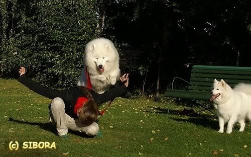 virtavalo Posted December 15, 2007 Posted December 15, 2007 :placz:Szczerze mówiąc nie chce mi sie ripostowac Twoich wypowiedzi mortikia :(. Samoyed jest psem zaprzęgowym czy chcesz tego czy nie i niestety był jedynym psem jaki mógł spac w jurcie. A polskie samoyedy?? Są jednymi z lepszych, ich sukcesy i wspanialy eksterier powinny o tym świadczyc - ale to trzeba chciec zauwazyć i wedziec jak powinien wyglądac samoyed. To co Ty mówisz o samoyedach wielu z nas mogłoby powiedziec o malamutach i husky.A tak po prostu - nalezy spojrzeć np na psy startujące w Mistrzostwach Europy - ESDRA. Husky mozna na placach zliczyć, malamutów w ogóle nie ma. W takich zawodach startuja tylko kundle, niestety. Nawet nasi super zawodnicy nie próbuja jechac na rasowcach tylko maja do tego typu zawodów eurodogi:) Wystarczy pojeździć i popatrzec jakie psy najczęsciej startują. Na naszych zawodach organizowanych w Bydgoszczy, jest zawsze duzo załóg jeżdżących na husky, , kilka na malamutach a w tym roku był nawet zaprzęg mieszany z 2 samoyedami i nie zauwazyłam, żeby ta dwójka miala mniej zapału do pracy niż pozostałe psiaki :) zresztą polecam przeglądnięcie galerii klubu "Śnieżne psy", z ostanich zawodów to zobaczycie tez pracujące samki:) ( www.klubsnieznepsy.com) A dlaczego maszerzy nie jeźdżą na samoyedach?? Bo nasze zawody sa zawodami sprinterskimi i tak samo jak samki tak nie sprawdzaja sie tez w nich malamuty :) a i husky sa gorsze od eurodogów:( Ale co tam, pewnie wiesz lepiej bo twój tata....................... http://klubsnieznepsy.com/images/ariel/wyscigi.2007/3.jpg [ciach] W drugiej i trzeciej parze tego zaprzęgu biegną samoyedy. Jakos nie widac różnicy w zapale do pracy między nimi a haszczakami :) Ja mam samoyedy i moje psiaki biegaja rekreacyjnie przy rowerze czy hulajnodze :) Quote
