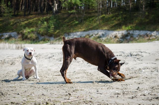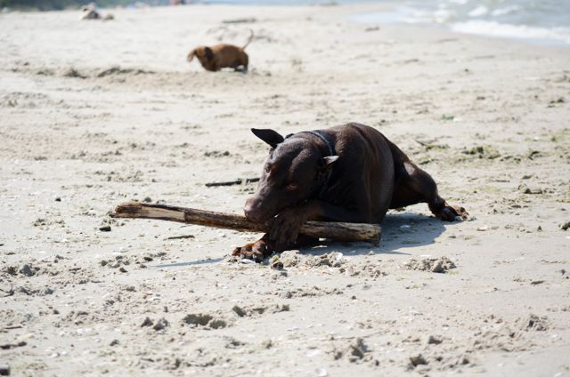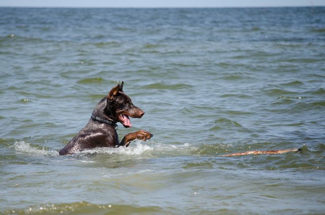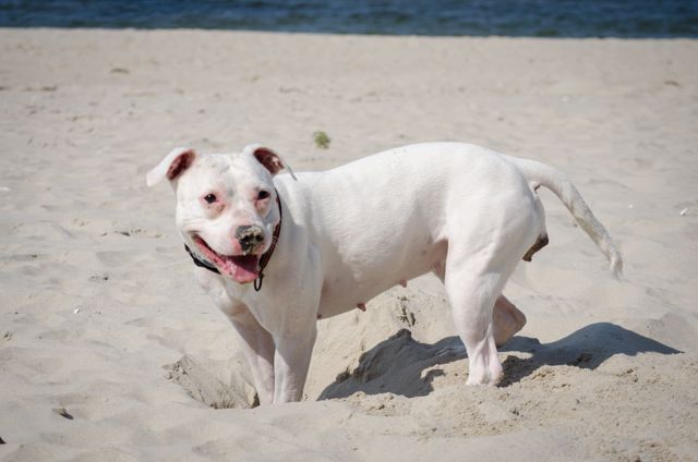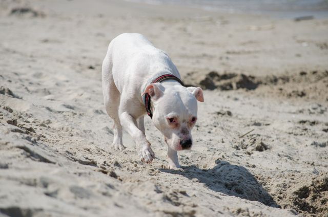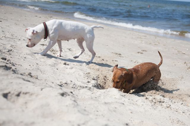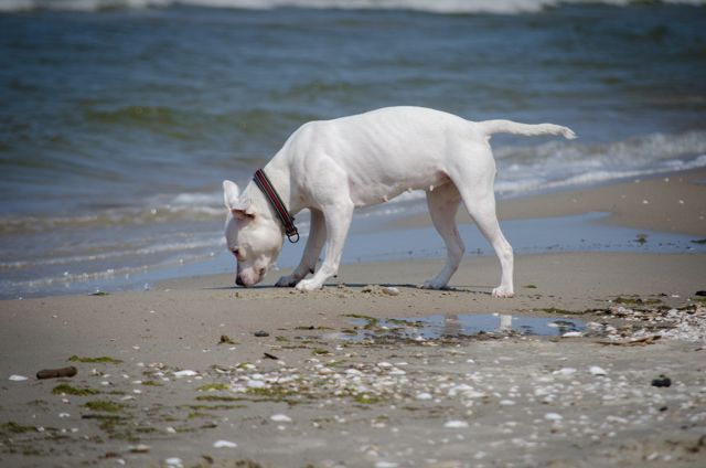 Amber Posted July 18, 2014 Author Posted July 18, 2014 Dziś nie w Macu ale w kawiarni... Net nawet szybszy ;) Byłyśmy, zgodnie z planem, wczoraj nad morzem, w Kątach Rybackich. Trochę ponad godzina drogi, więc warto było. Plaża dość zatłoczona, od samochodu szłyśmy chyba ponad 2 kilosy zanim znalazłyśmy dużą przerwę między ludźmi i tam się ulokowałyśmy. Pogodę w sumie cały wyjazd mamy jak na zamówienie, więc i wczoraj było idealnie pod tym względem. Psy się wyszalały za wszystkie czasy. Jari szedł w fale jak głupi, myślałam, że się będzie trochę bał, ale nic z tego ;) Tylko był trochę zaskoczony jak go fala "znienacka" walnęła w tyłek :evil_lol: Cortina w połowie plażowania stwierdziła, że pójdzie pogryźć fale więc latała jak głupia wzdłuż brzegu, Prośka natomiast zamieniła się w jamnika i kopała doły. Każdy więc znalazł sobie godną rozrywkę :lol:. Fot mamy ponad 100 obrobionych (ponad 300 na kartach ;) ) i nie ma co czekać, więc wrzucę je teraz wszystkie :eviltong: Quote