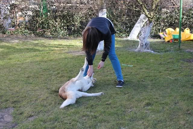 Talucha Posted March 28, 2012 Author Posted March 28, 2012 Kupowałam na allegro u użytkownika: Astra011 i mogę śmiało polecic ;) Lasti szuka to co mu każę :razz: Ale świnkę z największym zapałem, bo to jego ukochana :) Notka z pb, jakby kogoś interesowało co robiłam z psiakami dzisiaj :eviltong: Wzięłam Lastiego na dwór i poszłam po Łatka. Wyczesałam oboje a potem trochę się bawiliśmy (tzn. z Lastim, bo Łatek niezabawowy), trochę cwiczyliśmy (z jednym i z drugim), trochę zrobiłam zdjęc, mam kilka filmików :cool3: Jestem dumna z obojga :p Z Łatkiem było trochę babrania przy czesaniu, ponieważ sierśc się skołtuniła na szyjce i na dupce. No i tu pierwszy powód do zadowolenia-Łatek dał sobie wyczesac uda i zadek! W zeszłym roku było baaardzo ciężko. Prawdopodobnie Łatek kiedyś został lekko potrącony w zadek i nie lubi gdy się tam go dotyka czy czesze. Stąd też pewnie lęk przed każdym nadjeżdżającym samochodem (ten lęk w dużym stopniu udało nam się zminimalizowac ;)). Ale pracowałam z nim i odczulałam go właśnie na dotyk brzucha, ud, zadka i dzisiaj mogłam go wyczesac :) Ma jeszcze niewielkie opory ale jest znacznie lepiej. Może więc w tym roku jak będę go trochę ścinac łatwiej pójdzie z tylną częścią :D Łatka nauczyłam kolejnej komendy: 'poproś'. Lasti nie rzucał się na Łatka z chęcią mordu gdy dawałam mu smaki. Niedługo muszę ich wykąpac. Lasti zaczyna śmierdziec (tylko jak się go powącha, bo tak to nic nie czuc :P) i ma trochę tłustą sierśc w dotyku. Z Łatka kąpielą chyba jeszcze poczekam aż zrobi się cieplej, to samo z Dingiem. Aaaa i jeszcze trochę pracowałam z Lastim z wprowadzaniem do klatki. On się boi dźwięku, który klatka wydaje (burzy i fajerwerek się nie boi, ale klatki tak :roll::lol:), więc skupiałam jego uwagę na sobie i trenowaliśmy sobie komendy podczas gdy brat lekko dzwonił klatką. Lasti po chwili przestał zwracac na to uwagę. Wrzucałam mu też do środka smaki, wchodził na początku niepewnie. Pracowaliśmy z klikerem i po chwili wchodził coraz pewniej ale jeszcze nie wszedł cały. Będziemy nad tym pracowac. Wszystko powoli, nie spieszy nam się a nie chcę 'spalic' klatki na samym początku. Fotki właśnie zmniejszam :D Quote