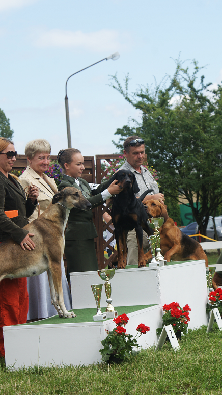 Kisses Posted July 17, 2011 Posted July 17, 2011 A My dzisiaj skromne V1/2 i CWC, czym zamknęliśmy Ch.PL :) Wystawiany przeze mnie collie - V1/4, CWC, jako jedynaw klasie dostała dosk :)) JH 5/5 i półfinał Wielka szkoda tylko, że oddział olał sobie trochę sprawę nagród... Medali za lokaty nie było, za Młodego Prezentera pucharów nie było w sobotę, ale tutaj na fotkach z niedzieli widzę, że są, czyli albo ktoś nas wczoraj źle poinformował, albo nasze 40 zł poszło się paść :lol: Quote