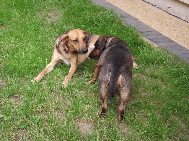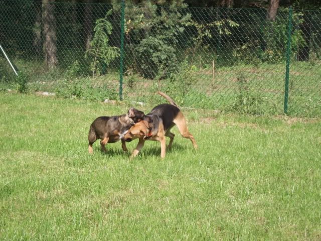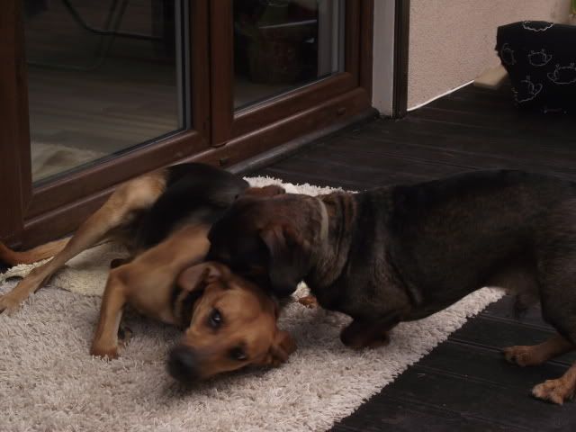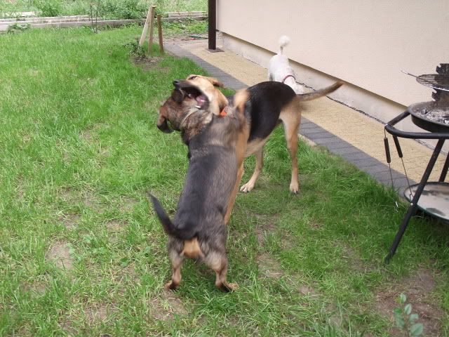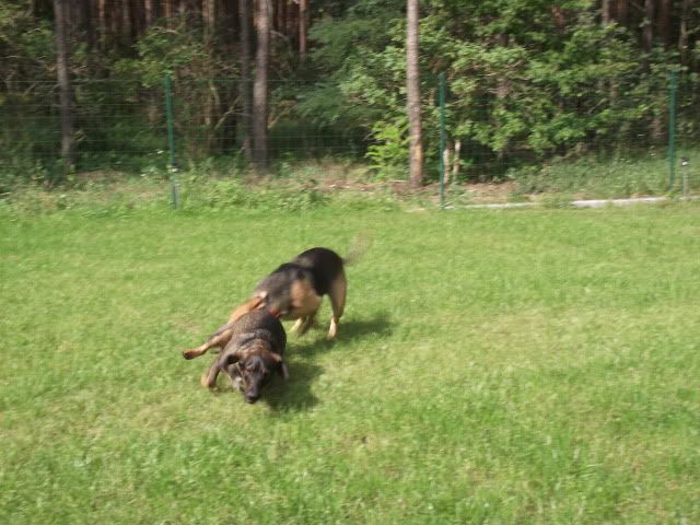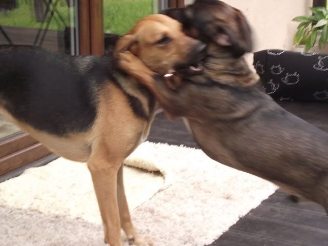 Kajusza Posted August 24, 2011 Author Posted August 24, 2011 napewno jakoś się uda spotkać :-) Ostatnio Wega ma duzo wrażeń - byłyśmy w górach na weekend, w sumie średnio udany bo jak dla mnie .... i psów mało chodzenia było :-D Fotek niewiele, bo psy ciągle na smyczach to trudno o jakieś fajne fotki :-( Dinuś wyjechał już na stałe :-( to Wegetka smutna, ale i tak jest lepiej niż myślałam, najgorzej jak wpada do domu i go szuka, patrząc skąd do nie j przybiegnie :-( ale cóż.... takie życie. Plus tego taki, że więcej będę z nią ćwiczyła, zaczęłam chodzi na spacery np. nad Wartę czy Kanał, a nie - jak z dwoma psami, jeżdzić autem. Dla Wegi to w sumie nowość, bo rzadko chodzi w mieście. Praktycvznie od naszego ostatniego takie spacerowania minęło chyba ze dwa miesiące .... i jest mega zmiana, jest spokojniejsza, ładnie chodzi przy nodze. Dziś w drodze nad rzekę spotkałyśmy dwa psy to nie była agresywna wobec nich :multi: A na spacer była umówiona z Milką i jej chłopakiem i ich psami - Wega poznała się z dorosłą labradorką i nie było żadnych spięć :multi: nawet Wega chciała się bawić momentami a z Basterem się bawiła :-) ..... ale na osiedlu od razu chciała ukatrupić psa z osiedla :-( Niewiem co ona ma w tej głowie :-( No i koniec tego pisania - fotki z odwiedzin u Koelki i jej psiaków Quote