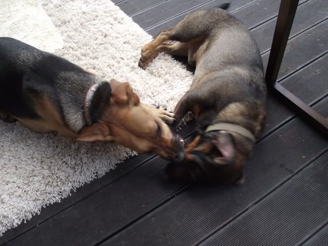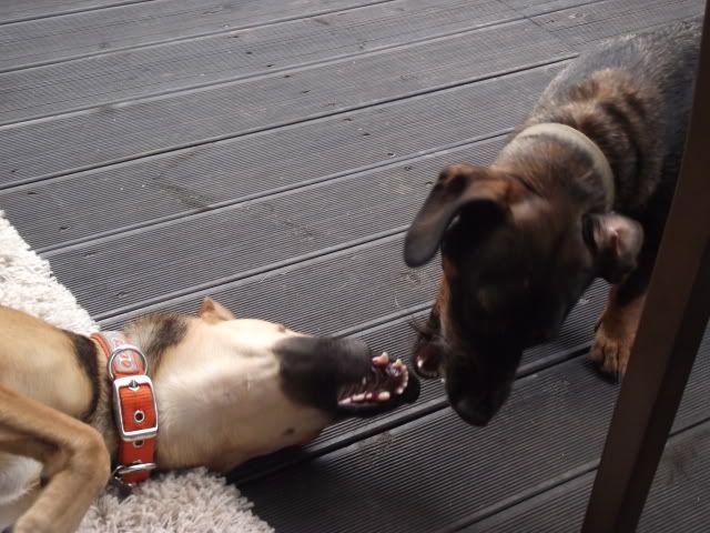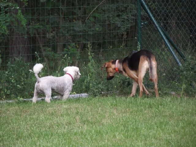 Kajusza Posted August 9, 2011 Author Posted August 9, 2011 Natalia a weźmiesz szelki Bastera? to bym przymierzyła Wedze, jak będzie mi się ją w nich prowadziło. I pochwalę się, że dziś na Kanale olała chłopaka, który biegl wałem z bokserem :-) popatrzyła na nich i dale biagała koło mnie :-) A potem podleciała do dużego psa i zaczeła się z nim bawić, ale Dingo podleciał i rozgonił towarzystwo :-( Nawet ostatnio przed bloekim zaczęła szczekać na znienawidzoną sukę ca de bou ale łatwo dała się uspokoić, szłam potem z nią za tym chłopakiem i psem a wega już niereagowała :multi: Quote