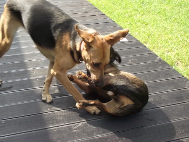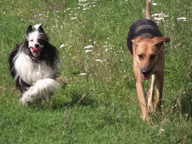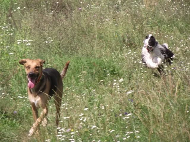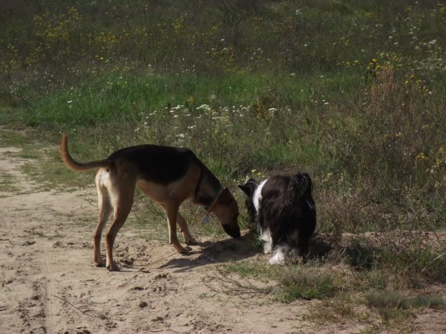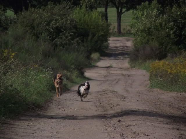 Kajusza Posted August 28, 2011 Author Posted August 28, 2011 A oto fotki z dzisiejszego spontanicznego spaceru z Maalwi i jej Bibi :-) Wega oprócz jednego pogonienia Bibi w obronie smaczka była grzeczna, no i trzeba było ją stopować jak w gonitwach chciała ją podgryzać ale było to do opanowania... nawet nie ganiała po krzakach w pogoni za bażantami, a jak raz jej się zdażyło to szybko się odwołał :-) cdn Quote