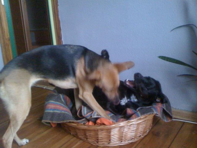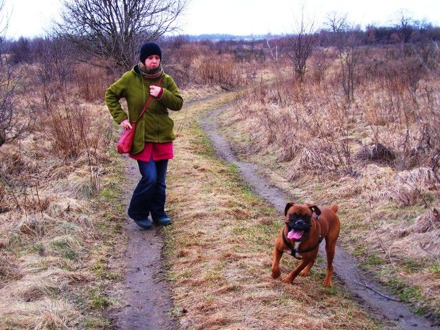 Kajusza Posted March 20, 2012 Author Posted March 20, 2012 Już zostaje spokojnie, nagrywałam ją (pierwszą godzinę, bo tyle mi aparat nagrywa), to trochę się kręci po domu a potem kładzie się i śpi :-) Fotki mam taki miks, trochę z nad jeziora jak jechałam do taty, trochę z mordowania kota, którego dostała od Urwiniu a który złośliwie piśnie wtedy jak już Wega ma dość i chciał już mu dac spokój i znów musi go mordować ;-) I kilka fotek z Dorianem, bokserkiem uratowanym z łańcucha, który mieszka teraz w Gorzowie :-) Ogólnie Wega na osiedlu raczej spokojnie się zachowuje, nie ujada jak opętana, nieraz najeży się na jakiegoś burka, ale w normie to jest. Tutaj większośc psów lata luzem, to Wega nie ma takiej spiny na nie, obwąchają się i spokój :-) Na początek Wega i Dorian :-) ........... no i ja ;-) Wegeta tak plaskatego przegoniła po polach, że biedak sapał, zapluł się ... ehhhh nie ma kondycji biedak ;-) Quote