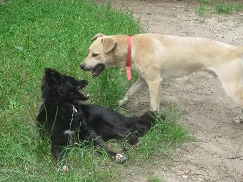 *Gajowa* Posted July 24, 2011 Posted July 24, 2011 Yoko jest bardzo niedelikatny, duża Onka Vega nie chce się z nim bawić :shake:, ucieka przed nim i chowa sie do budy. Wpuszczam mu na wybieg Viki niedużą sunię, która też początkowo nie akceptowała jego brutalnego podgryzania za kark i uciekała przed nim ale później zmieniła taktykę i zaczęła Yoko ustawiać :evil_lol:. Teraz fajnie sie bawią a Yoko stał sie bardziej delikatny Quote