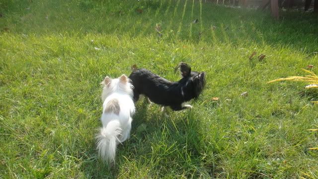 ChiqDeeWikiXenia Posted October 24, 2011 Author Posted October 24, 2011 Z filmikiem będzie trochę trudniej niż myślałam...:roll: A dziewuchy chyba coraz bardziej się oswajają, bo teraz na przemian warczą na siebie:evil_lol: dobrze, że w tym domu szefem jestem ja;) Mała śpi sama w spanku, a dziś w nocy zostawiła na dywaniku super świeżutkie siiiiiku:diabloti: no i na dzień dobry musiałam prać:eviltong: Z rana pierwszy napad radości, że nas widzi:loveu: i jest coraz bardziej odważna:multi: Quote